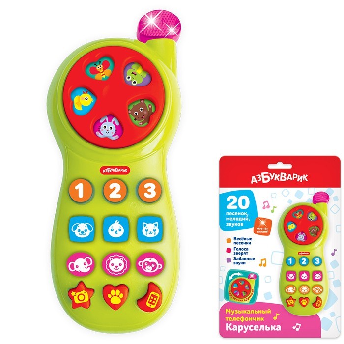 Каруселька музыкальный телефон зеленый 4630027292957