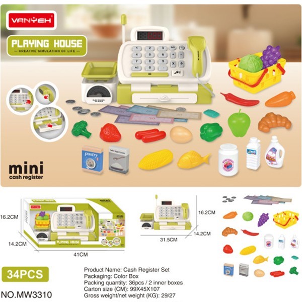 - в комплект входит касса со сканером, деньги, игровые атрибуты