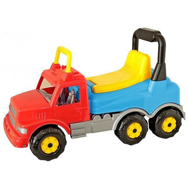 Каталка-машинка представляет собой пластиковый толокар в виде яркого грузовика с прочным основанием и рулевым управлением. Она проста и удобна в управлении: необходимо поворачивать руль и отталкиваться ногами. Прочная пластиковая рама имеет небольшой вес, а широкие колеса гарантируют устойчивость. Такая каталка способствует развитию опорно двигательного аппарата ребенка, укреплению суставов и координации в пространстве. Катание на таком толокаре для ребенка будет одновременно увлекательным и абсолютно безопасным. Четыре широких колеса из пластика делают машину устойчивой к опрокидыванию, спереди и сзади есть защита от попадания предметов под нее. Руль поворачивается на 2 стороны. Машинка-каталка оборудована высокой спинкой, ч