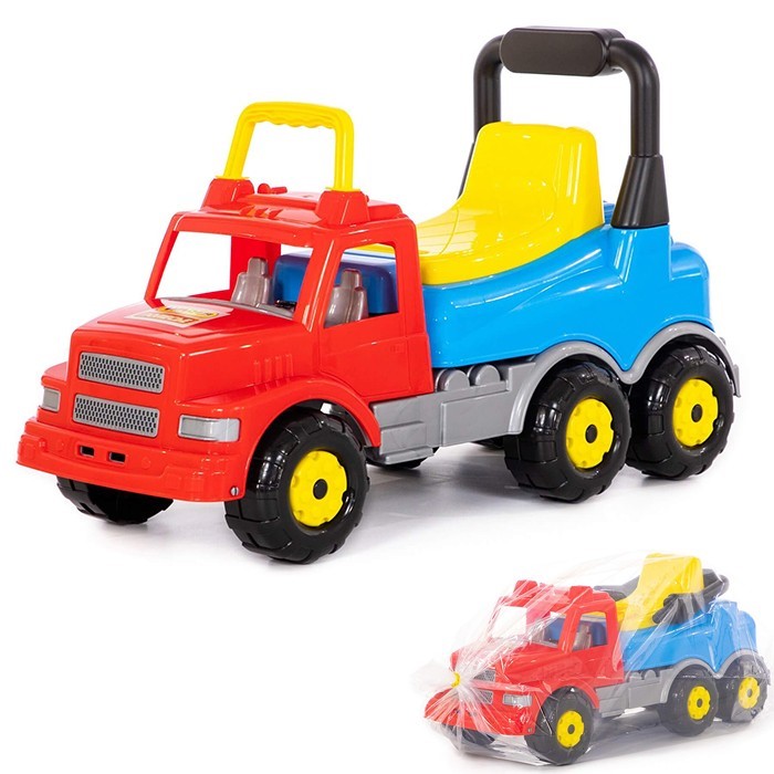 Каталка-машинка представляет собой толокар в виде грузовика с прочным основанием и рулевым управлением. Она проста и удобна в управлении: необходимо поворачивать руль и отталкиваться ногами. Прочная пластиковая рама имеет небольшой вес, а широкие колеса гарантируют устойчивость. Такая каталка способствует развитию опорно двигательного аппарата ребенка, укреплению суставов и координации в пространстве. Катание на таком толокаре для ребенка будет одновременно увлекательным и абсолютно безопасным. Четыре широких колеса из пластика делают машину устойчивой к опрокидыванию. Руль поворачивается на 2 стороны. Машинка-каталка оборудована высокой спинкой, чтобы ребенок мог самостоятельно сесть за руль. Под сиденьем имеется багажник для перевозки игрушек.