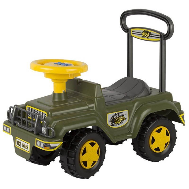 Каталка-толокар представляет собой пластиковую каталку в виде яркого джипа. Замечательная каталка станет отличным подарком для маленького автолюбителя. Отличная эргономика машины отвечает всем требованиям безопасности. Она проста в управлении. Прочная пластиковая рама имеет небольшой вес, а широкие колеса гарантируют устойчивость. Такая каталка способствует развитию опорно двигательного аппарата ребенка, укреплению суставов и координации в пространстве. Ребенок будет прилагать усилия для передвижения, отталкиваться ногами и, тем самым, развивать моторику и внимание, приобретать навыки