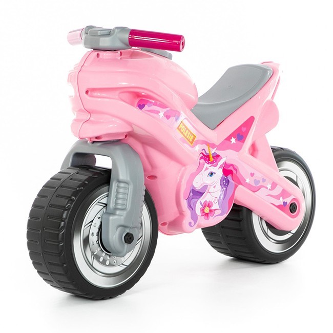 Каталка-мотобайк представляет собой пластиковую каталку в виде яркого мотоцикла обтекаемой формы с мощным основанием и рулевым управлением. Оснащена клаксоном. Она проста в управлении: необходимо поворачивать руль и отталкиваться ногами. Прочная пластиковая рама имеет небольшой вес, а широкие колеса гарантируют устойчивость. Такая каталка способствует развитию опорно двигательного аппарата ребенка, укреплению суставов и координации в пространстве. Катание на таком мотоцикле для ребенка будет одновременно увлекательным и абсолютно безопасным. Преимуществом такого мотоцикла является его маленький вес и компактные габариты, так что поднять и перенести его не составит труда. Байк яркой расцветки, не выгорает на солнце, имеет широкие колеса, что придает устойчивости на поверхности. Руль поворачивается в 2 стороны. Есть удобная ручка