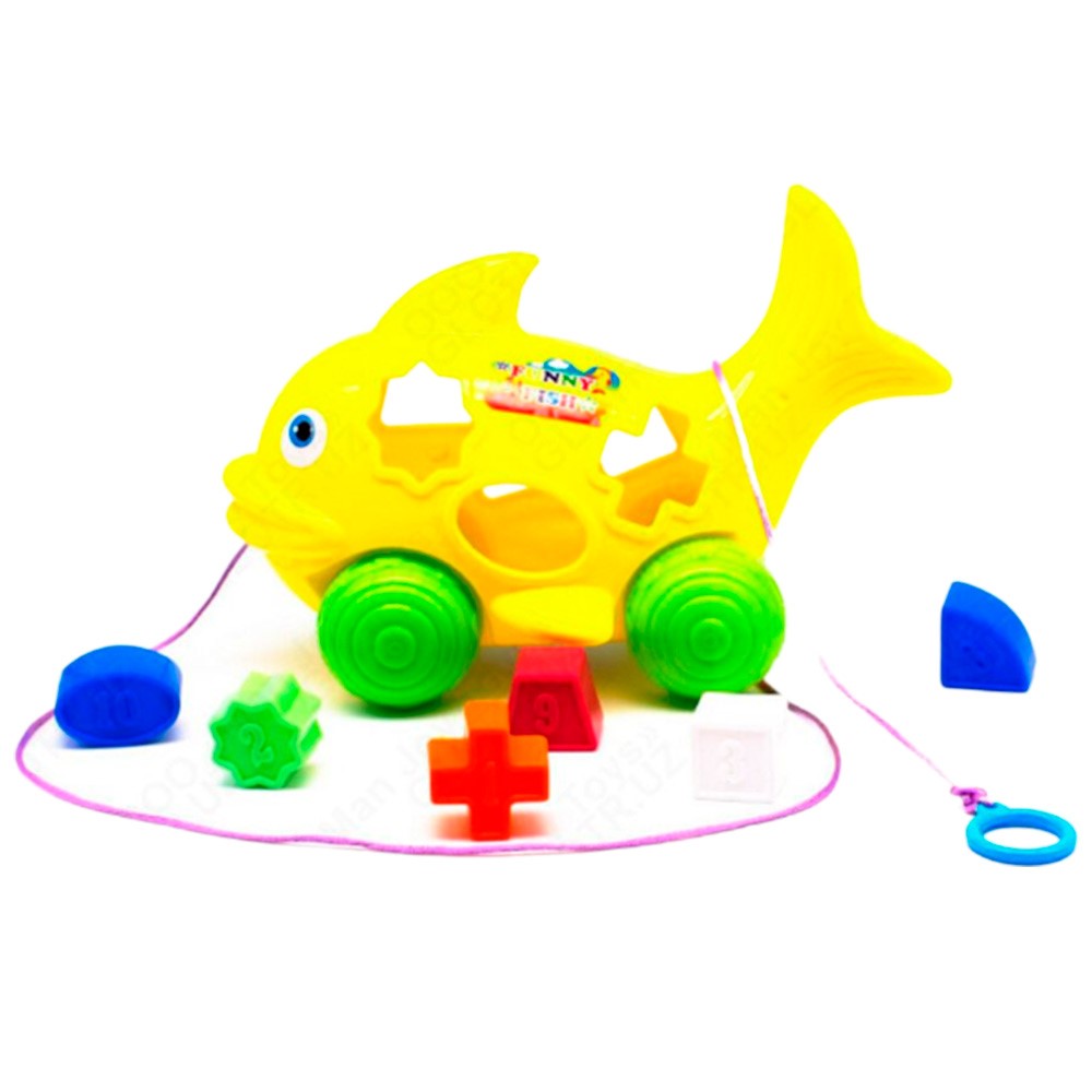 Каталка-сортер «Рыба» - это необычная игрушка, совмещающая в себе логический сортер и каталку.