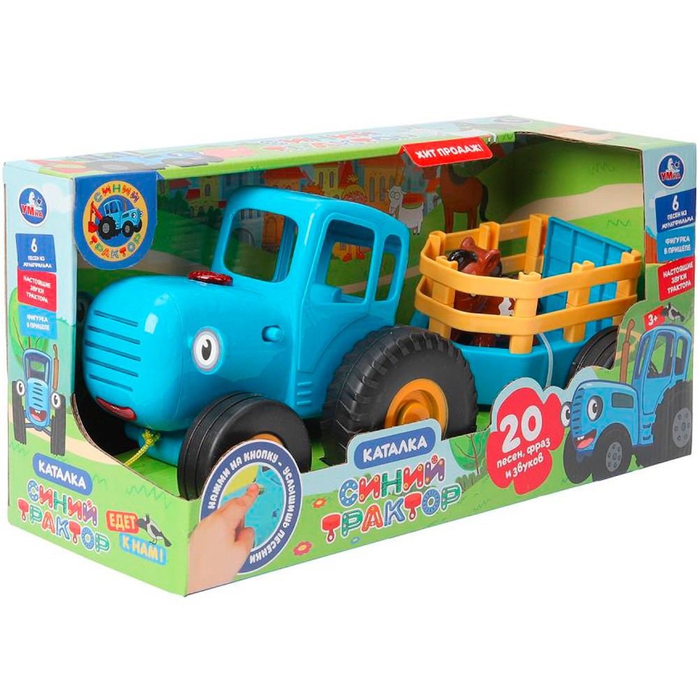 Каталка С ПРИЦЕПОМ + лошадка 20 песен,фраз, звуков СИНИЙ ТРАКТОР в кор. Умка HT1471-R1-WOD