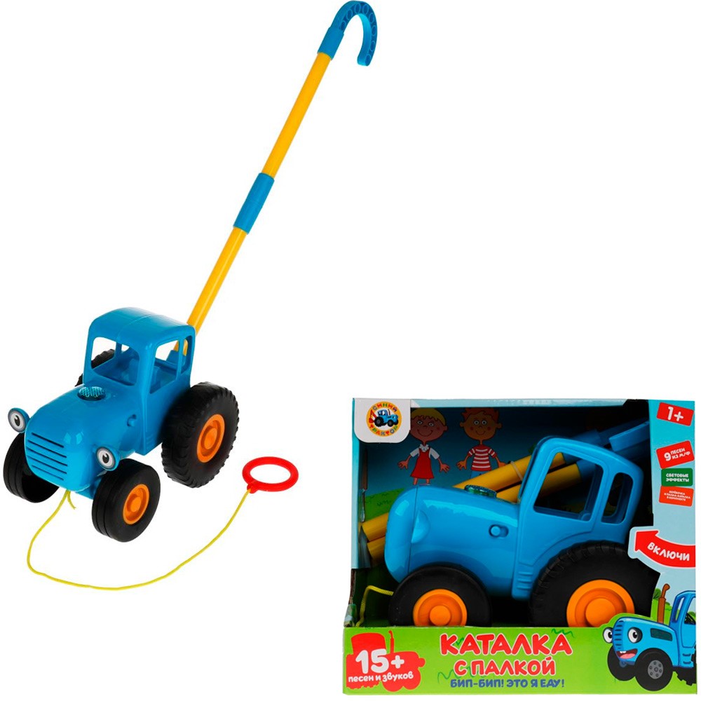 Каталка Синий Трактор с палкой,9 песен,свет,палка и веревка для катания HT826-R