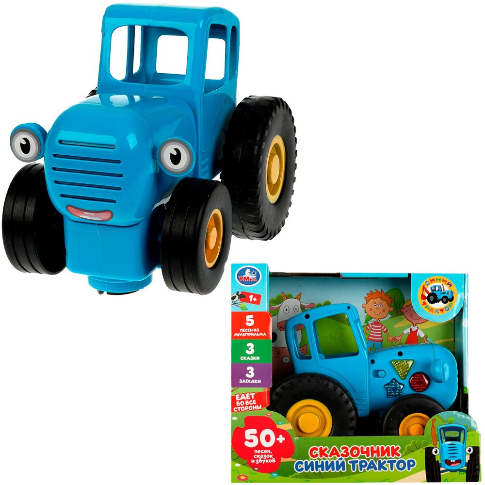 Воспроизводит 5 песен из м/ф «Синий Трактор»: «Едет трактор», «По полям», «Что ты делал, синий Трактор?», «Лево-право», «Разноцветные машинки»; 3 сказки: «Репка», «Курочка Ряба», «Теремок»; 3 загадки.