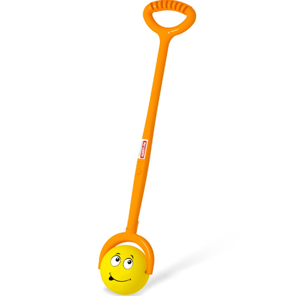 Каталка стимулирует малышей к движению: им обязательно захочется посмотреть, как катится цветной смайлик.