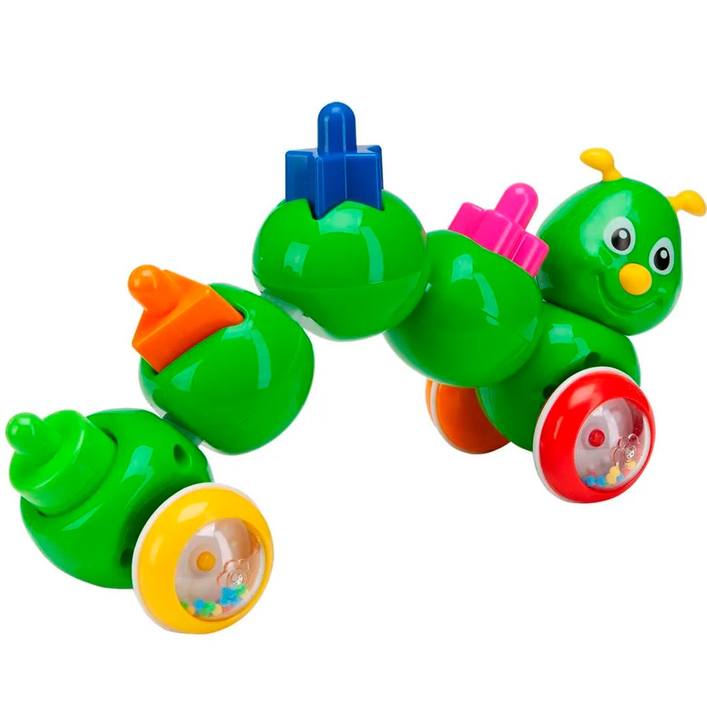 Каталка-сортер «Гусеничка» - это необычная игрушка, совмещающая в себе логический сортер и каталку, которая приходит в действие от пружины при нажатии на спинку гусенички.