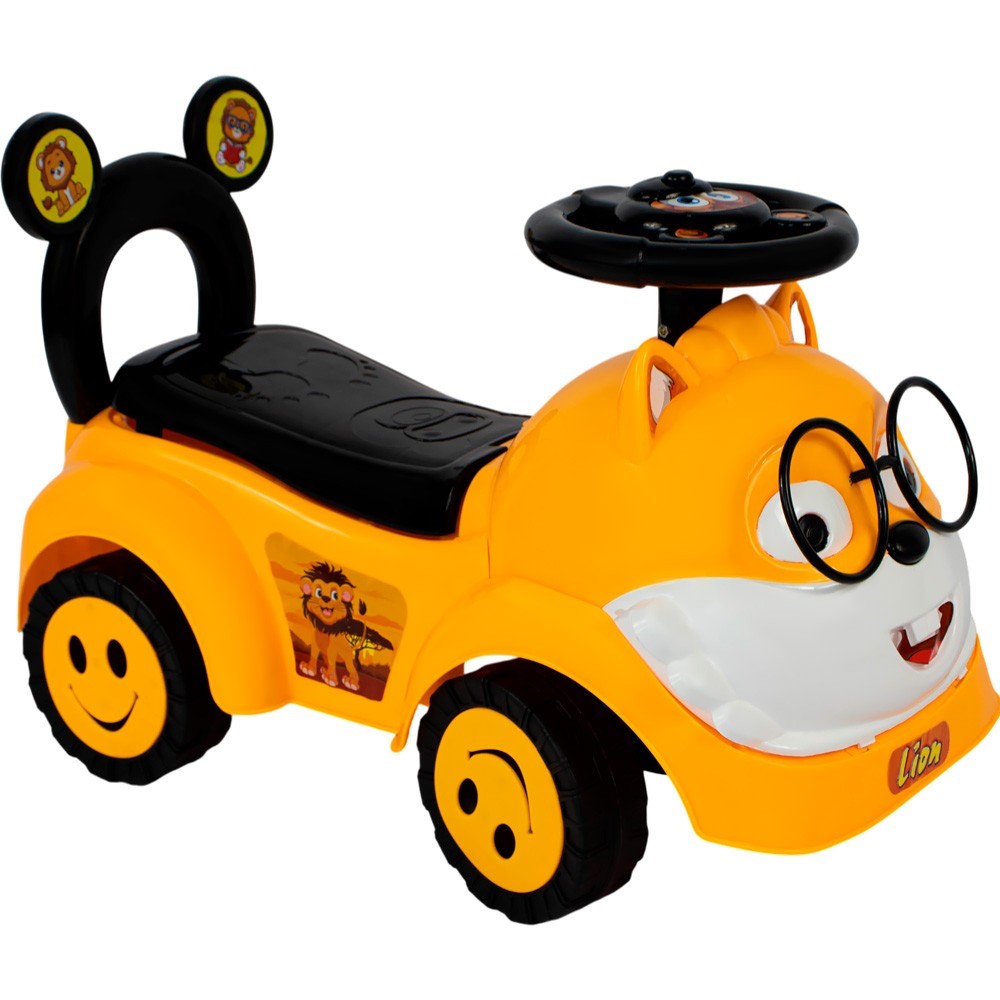 Игрушка выполнена в ярких цветах, имеет округлые формы деталей.