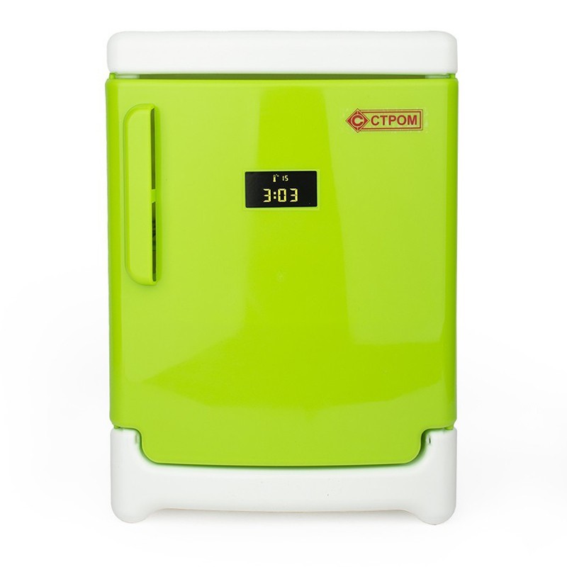 Ящик и дверцы холодильника открываются, внутри полки, на которых можно размещать продукты.