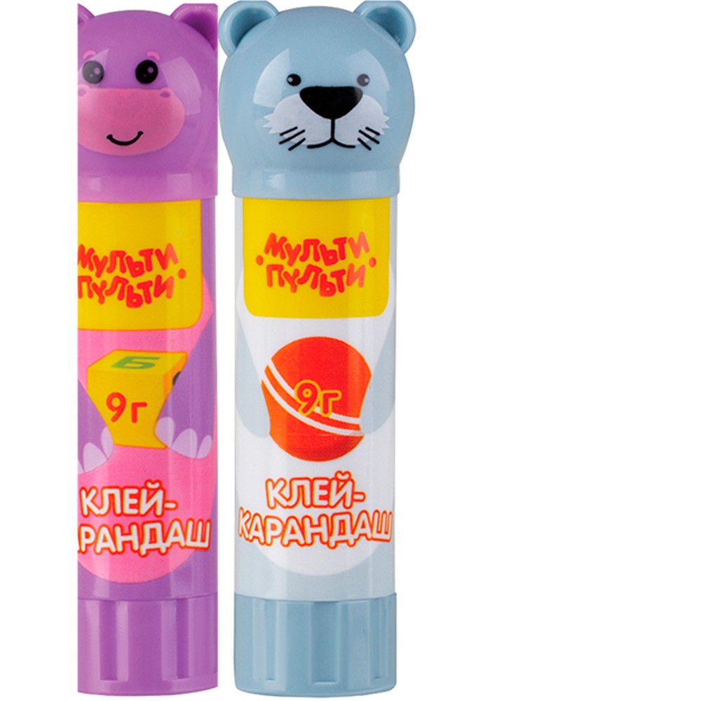 Клей карандаш 9 гр. Мульти-Пульти Зверята: Морской котик, Бегемот, Кошка GS_82995