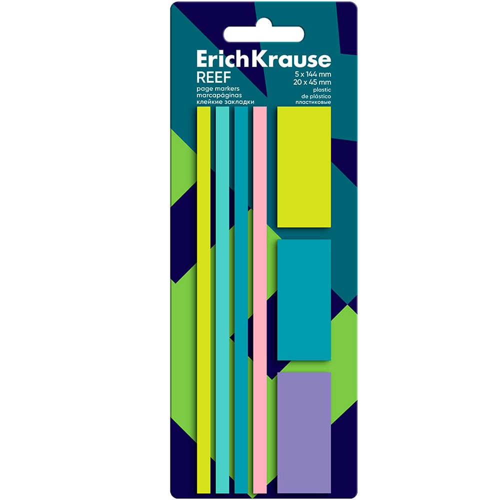 Клейкие закладки пластиковые Reef 140 листов, 5 цветов 63168 ErichKrause