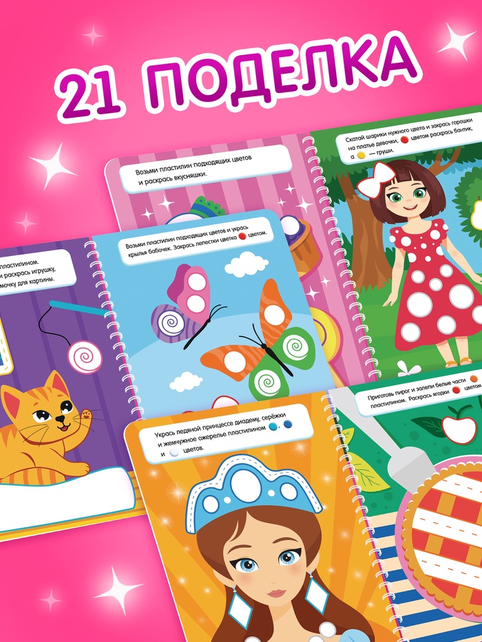 Книга «Многоразовые аппликации пластилином для девочек», 21 поделка
