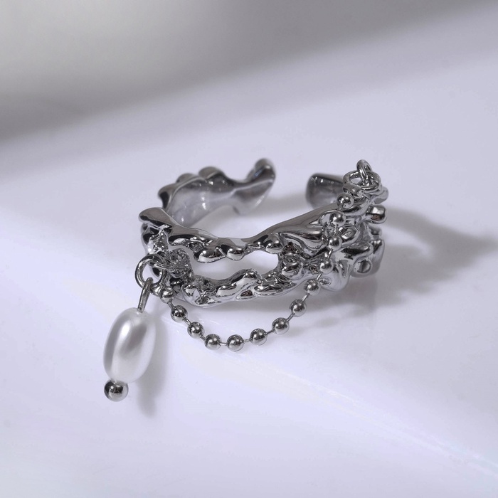 Кольцо «Цепи» переплетённые, цвет белый в серебре, безразмерное