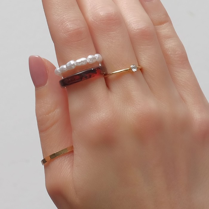 Кольцо набор 4 штуки «Джипси», эстетика, цвет красно-белый в золоте, размер 16-17