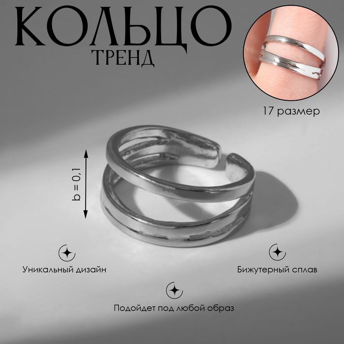 Кольцо «Тренд» раздвоение, цвет серебро, 17 размер