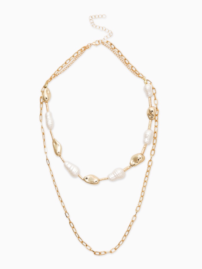 Колье цепочка «Жемчуг барокко», удлиненное, 2 яруса, белое в золоте