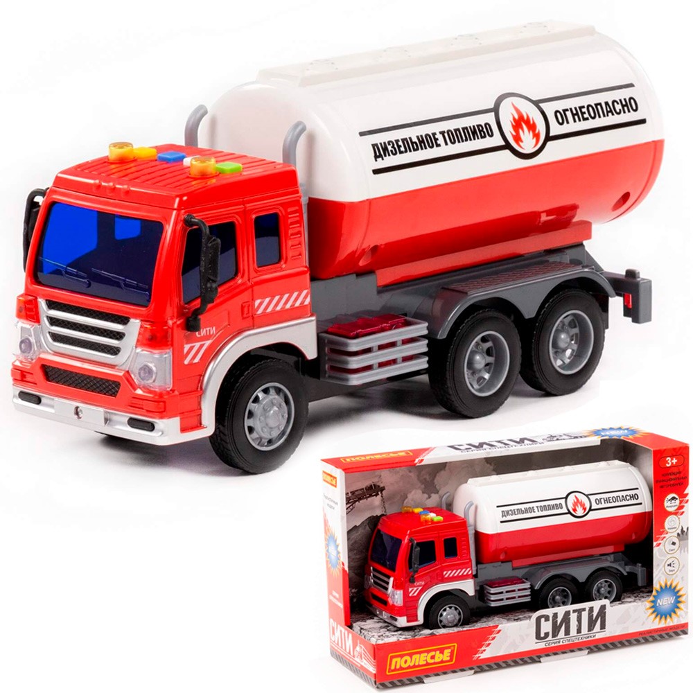 Автомобиль с цистерной Сити инерц. свет, звук красный в коробке 86372 П-Е /8/