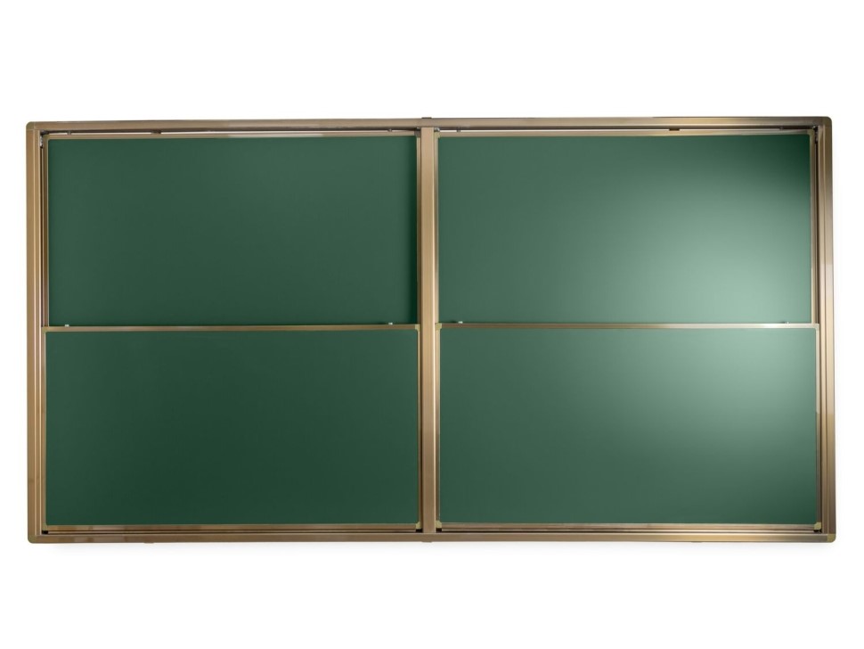 Стальная основа доски позволяет крепить наглядные учебные пособия при помощи магнитов. Модель можно дополнить лотком для мела, маркеров и других принадлежностей на одну из четырех досок.