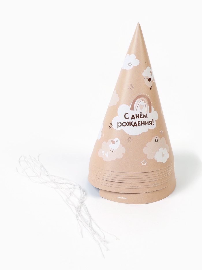 Колпак праздничный бумажный «С Днём рождения», бежевый (комплект 10 шт)