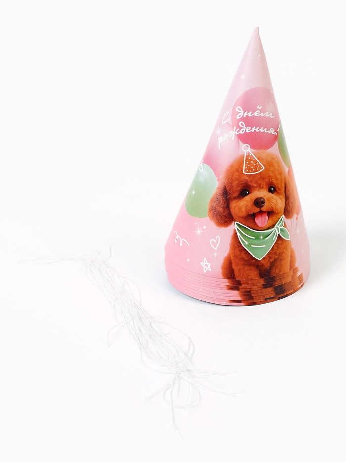 Колпак праздничный бумажный «С Днём рождения, собачка», розовый (комплект 10 шт)