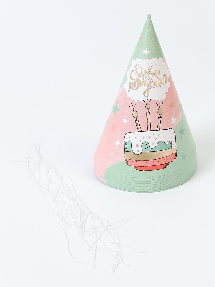 Колпак праздничный бумажный «С Днём рождения», торт (комплект 10 шт)