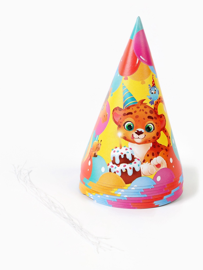 Колпак праздничный бумажный «С Днём рождения, весёлые зверята», желтый (комплект 10 шт)