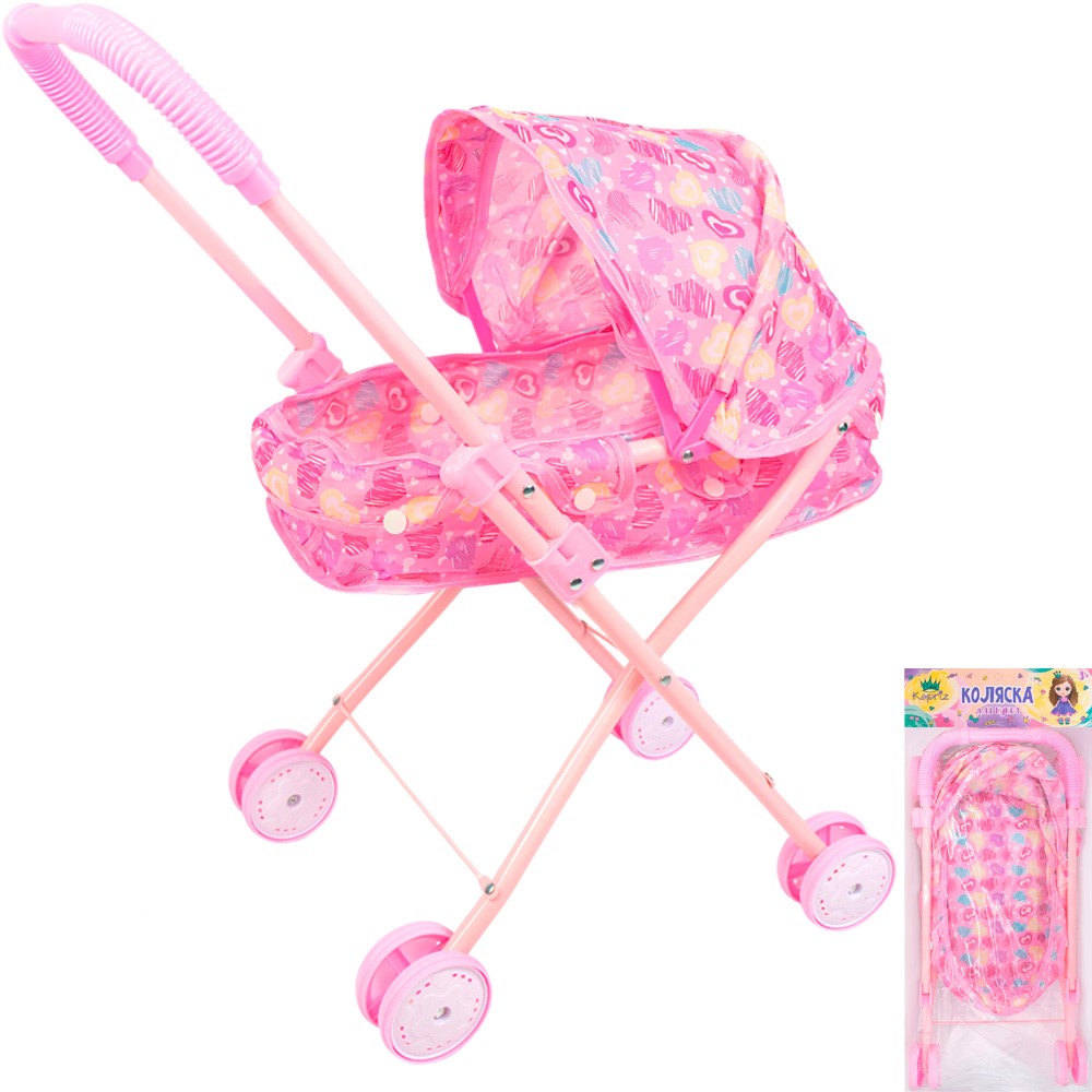 Коляска д/куклы Miss Kapriz MK336-4A Сердечки на розовом в пак.