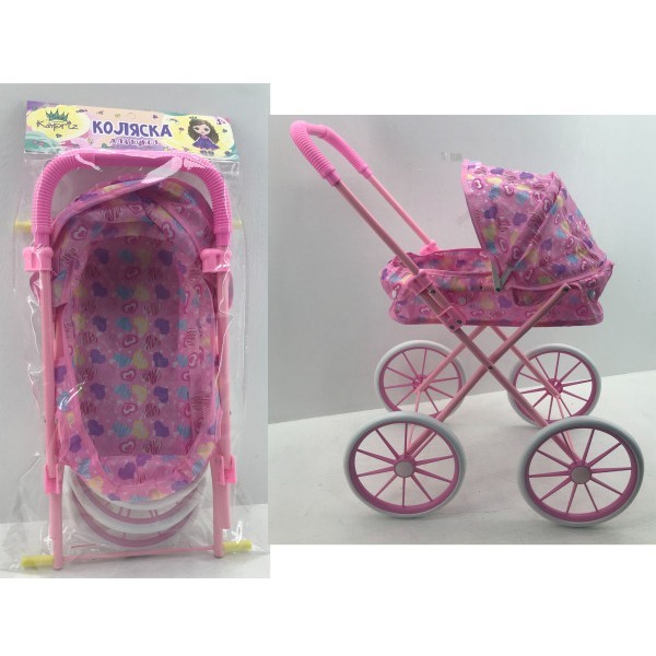 Коляска д/куклы Miss Kapriz MKD15A Сердечки на розовом, большие колеса в пак.