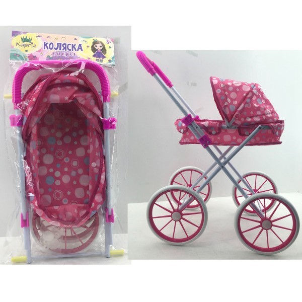 Коляска д/куклы Miss Kapriz MKD15B Розовое конфетти, большие колеса в пак.