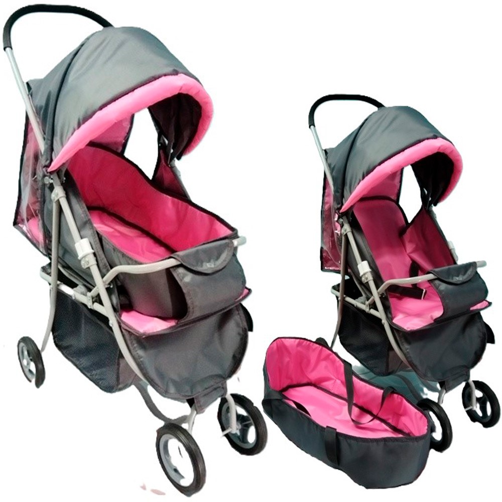 Коляска для куклы трансформер графит/розовая КР-250