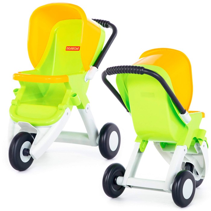 Она оборудована колесами и удобным сиденьем, где можно разместить куклу или любимую мягкую игрушку.