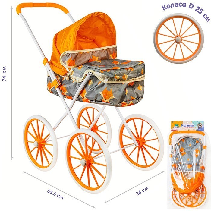 Коляска люлька д/куклы Miss Kapriz YS7619D с большими колесами в пак.