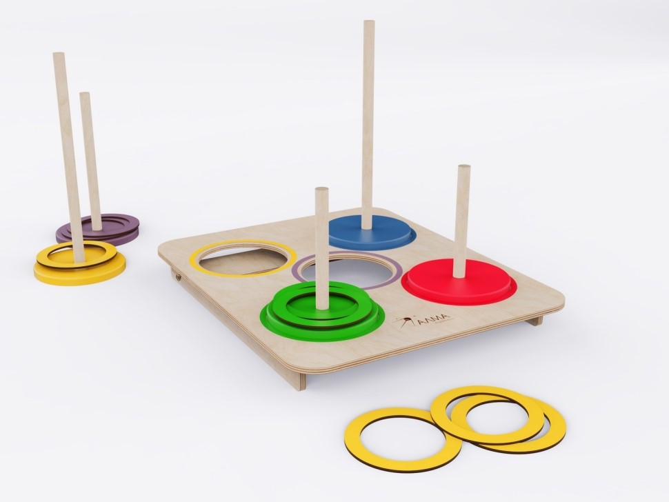 Спортивный снаряд и традиционная спортивная игра для детей от 3-х лет. Занятия на кольцебросе направлены на развитие меткости и глазомера, умение регулировать и координировать свои движения.