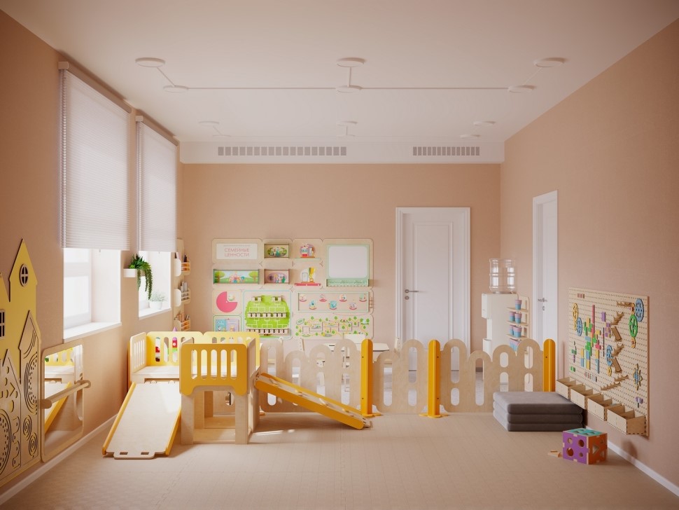 Комната кратковременного пребывания специально разработана для организации безопасного и комфортного пространства для детей от 1 года до 7 лет. Этот проект направлен на поддержку молодых семей и студентов, обеспечивая безопасные и удобные условия для присмотра и ухода за детьми в ходе образовательного процесса.