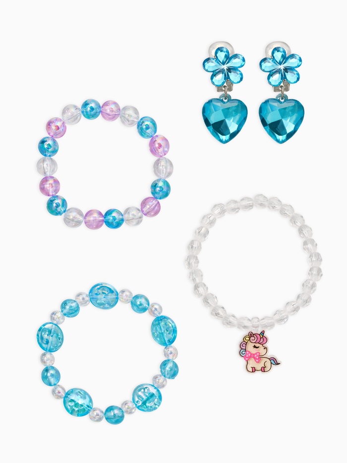 Комплект детский «Выбражулька» 4 предмета,3 браслета, 1 клипсы, единорог, сердце, цветной