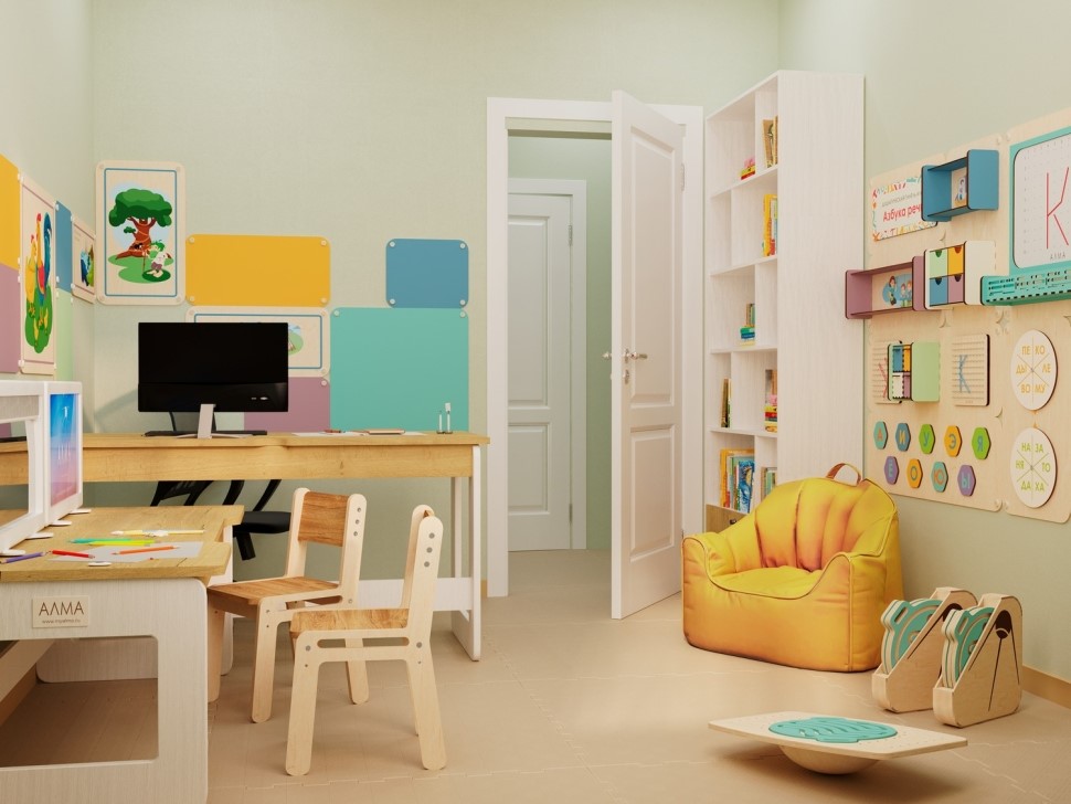 Подбор компоновки под ваше помещение. В компании «АЛМА» при заказе комплексного оснащения кабинета логопеда, дизайнеры сделают индивидуальную расстановку мебели с учётом габаритов вашего помещения. Это удобно и наглядно. Сразу понятен внешний вид будущего кабинета.