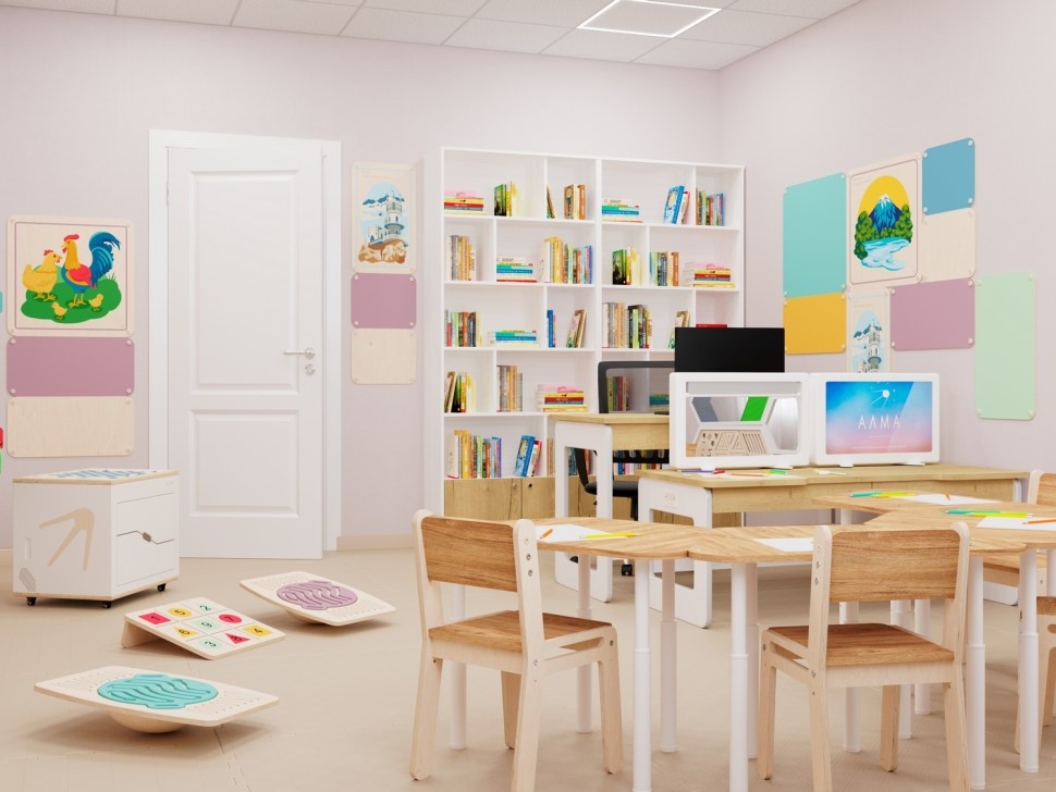 Наглядность и визуализация. При оснащении кабинета логопеда и психолога-дефектолога оборудованием «АЛМА» наши дизайнеры-визуализаторы могут сделать индивидуальную расстановку мебели, исходя из размеров и особенностей комнаты. Вы получаете наглядное представление о внешнем виде помещения и его зонировании, и сможете скорректировать детали в случае надобности.Зонирование и функциональность. На основе требований Государственного Стандарта наши методисты создали универсальную комплектацию для кабинета психолога и логопеда – это мобильная, многофункциональная предметно-развивающая среда, в которой все дидактические и коррекционные инструменты, входящие в комплект, вариативны в использовании для разных возрастов ребёнка и задач обучения.