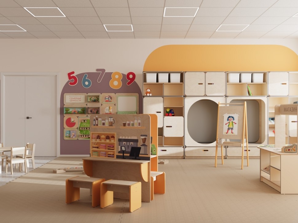 Безопасность. Вся мебель и оборудование изготовлены из прочных и безопасных для детей материалов с закругленными углами, которые исключают риск травмирования.