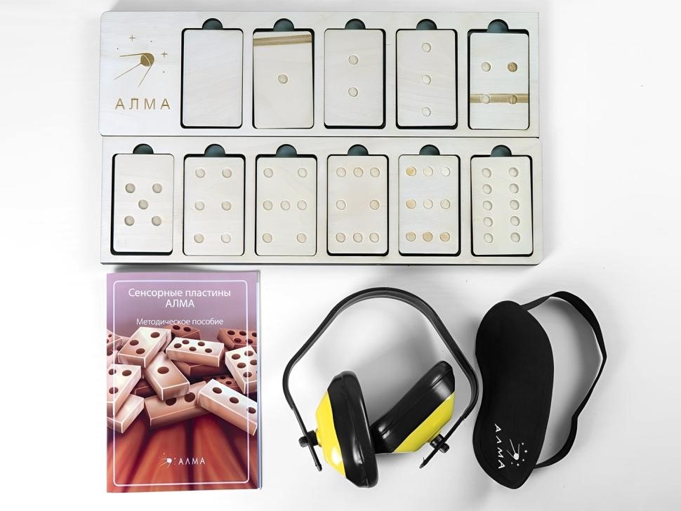 Описание и комплектация для прайсаКомплектом «Сенсорные пластины АЛМА» направлены на развитие мышления через тактильное восприятие. Комплектация: Сенсорные пластины, Методическое пособие (Отправляется в электронном виде), Наушники, Маска для глаз