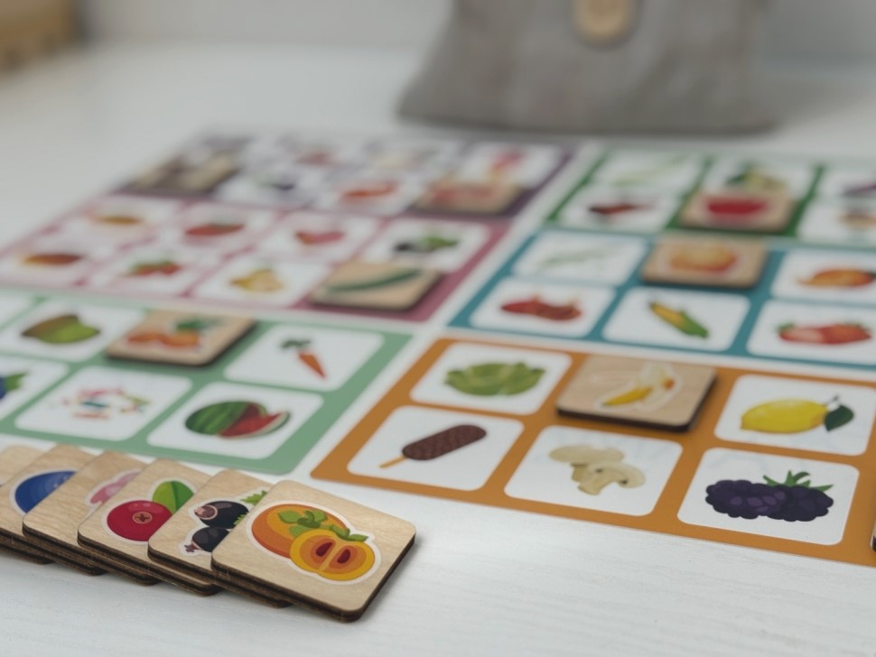 Лото «Животные» знакомит с представителями фауны, их названиями и внешним видом.Лото «Еда» закрепляет знания об овощах, фруктах, ягодах и сладостях.