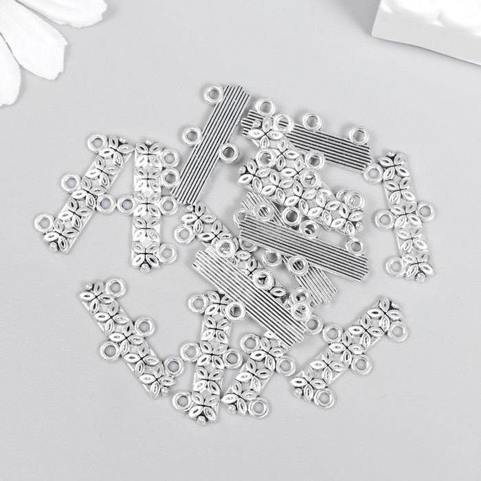 Коннектор для творчества металл 4 ушка "Листики" серебро 2,4х0,8 см (комплект 15 шт)