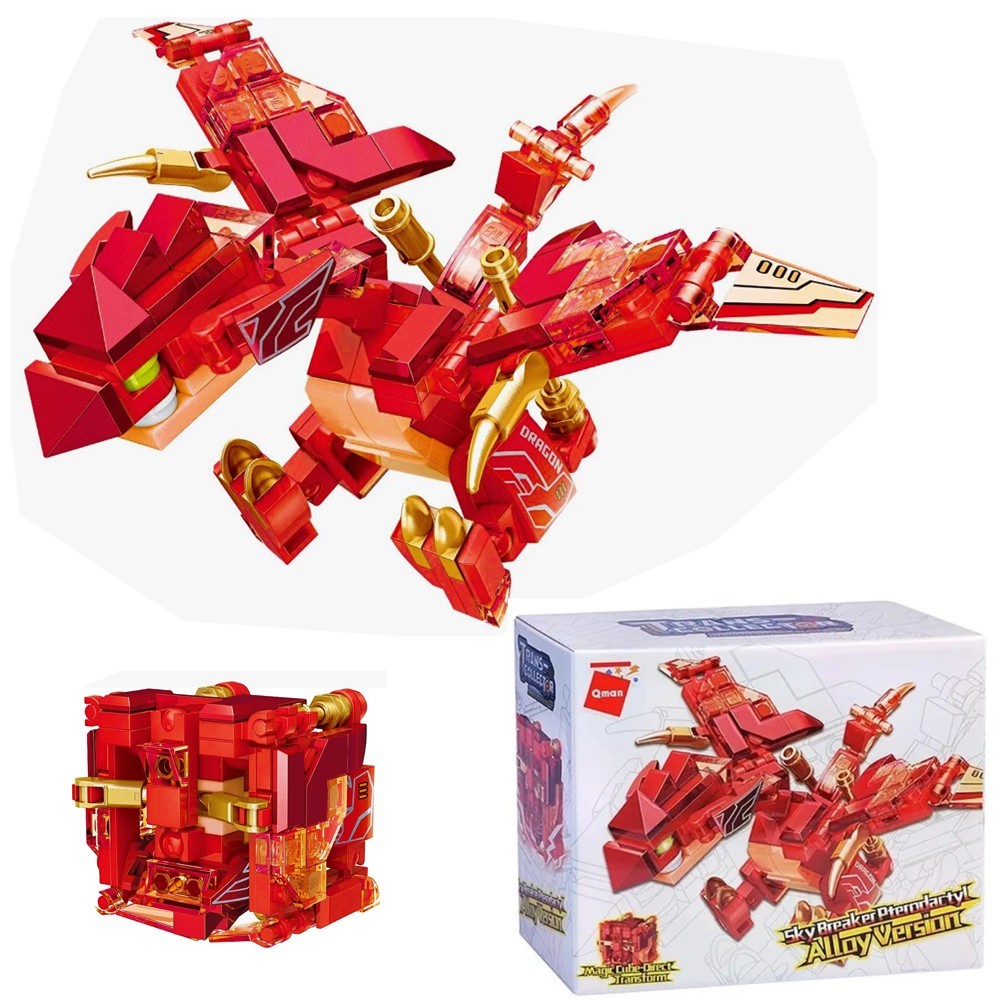 Яркий блочный конструктор позволяет собрать динозавра, который затем трансформируется в самолет.