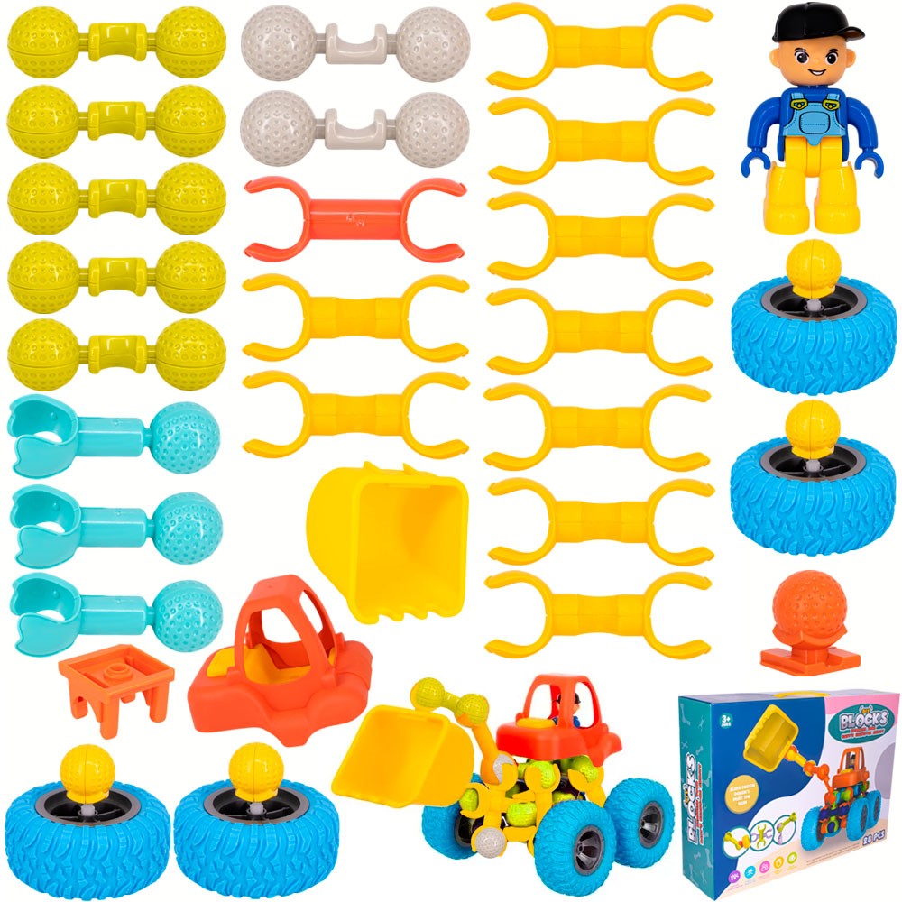 Яркий блочный конструктор позволяет собрать 3D-фигурку техники.