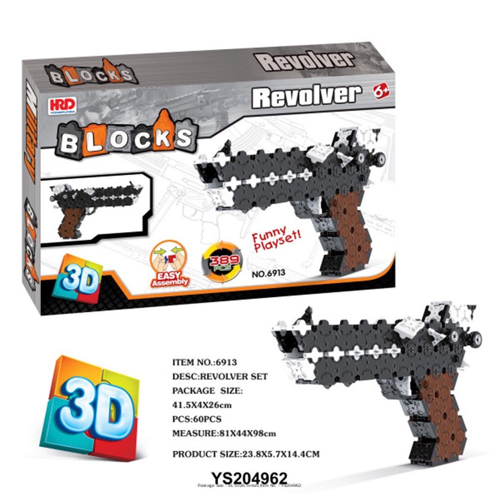 Яркий конструктор позволяет собрать объемную модель пистолета.