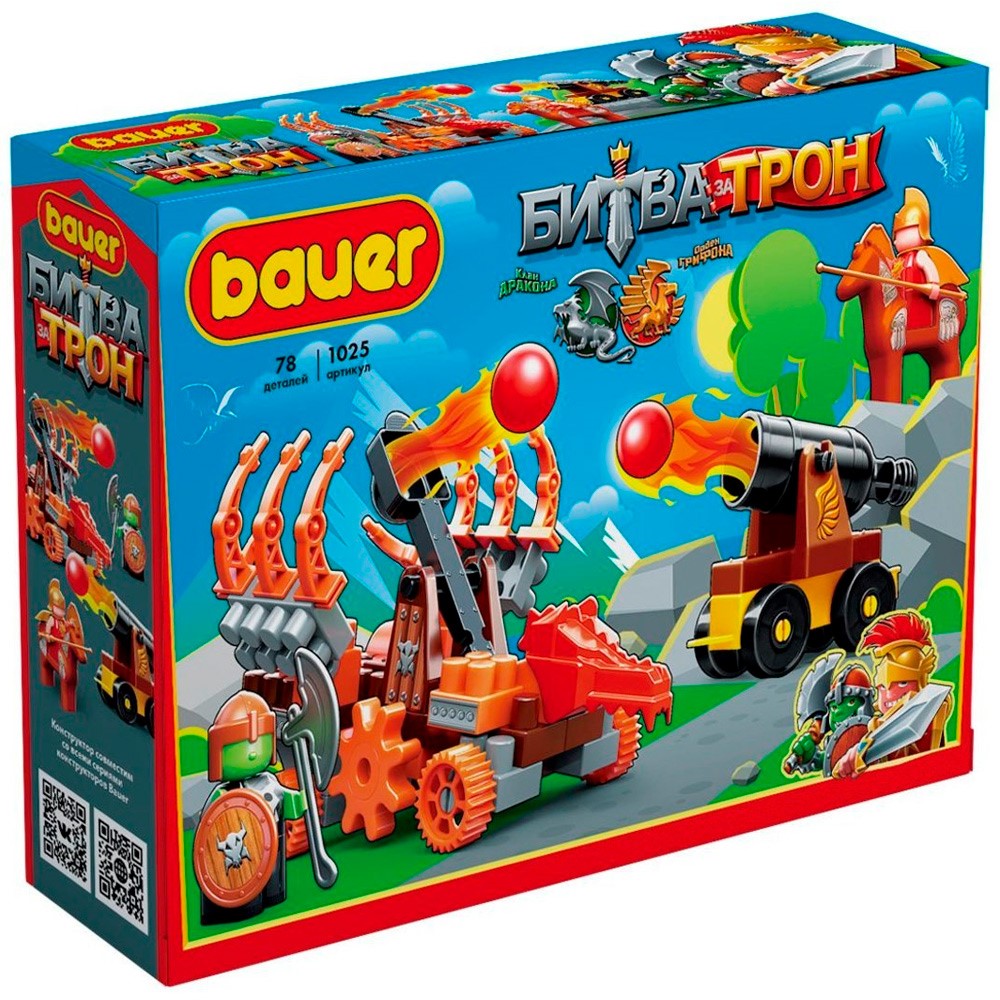 Яркий блочный конструктор Bauer позволяет собрать тематический набор - большой рыцарский турнир Битва За Трон, в котором будут состязаться две главные команды волшебного царства - Орден Грифона и Клан Дракона.