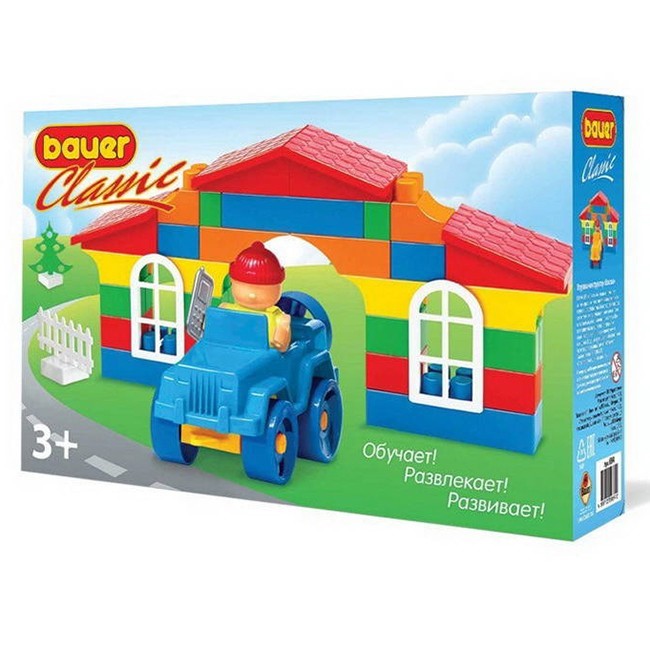 Конструктор из серии "Classic" от торговой марки "Bauer" - это функциональный набор из крупных деталей для создания увлекательной сюжетно-ролевой игры и прекрасный подарок и возможность для ребенка весело и с пользой провести время. В процессе игры ребенок сможет сконструировать множество вариаций построек. В комплект входят сборные фигурки человечков, машинки, блоки и аксессуары. Все наборы совместимы друг с другом и аналогичными наборами других производителей. Конструирование развивает логическое и образное мышление, наблюдательность и самостоятельность, а также моторику рук и ловкость пальцев. Игрушка красочно оформлена и изготовлена из качественного пластика с применением безопасных красителей. Занимаясь с конструктором, малыши раскроют свой творческий потенциал и воображение. Также можно придумать