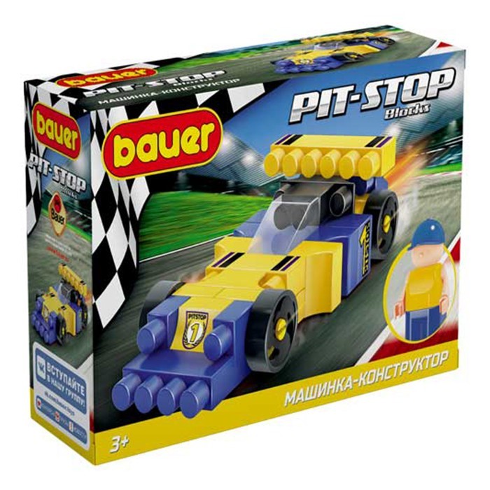 Конструктор Bauer 814 Гоночная машина в коробке "Pit Stop" (цвет синий, жёлтый)