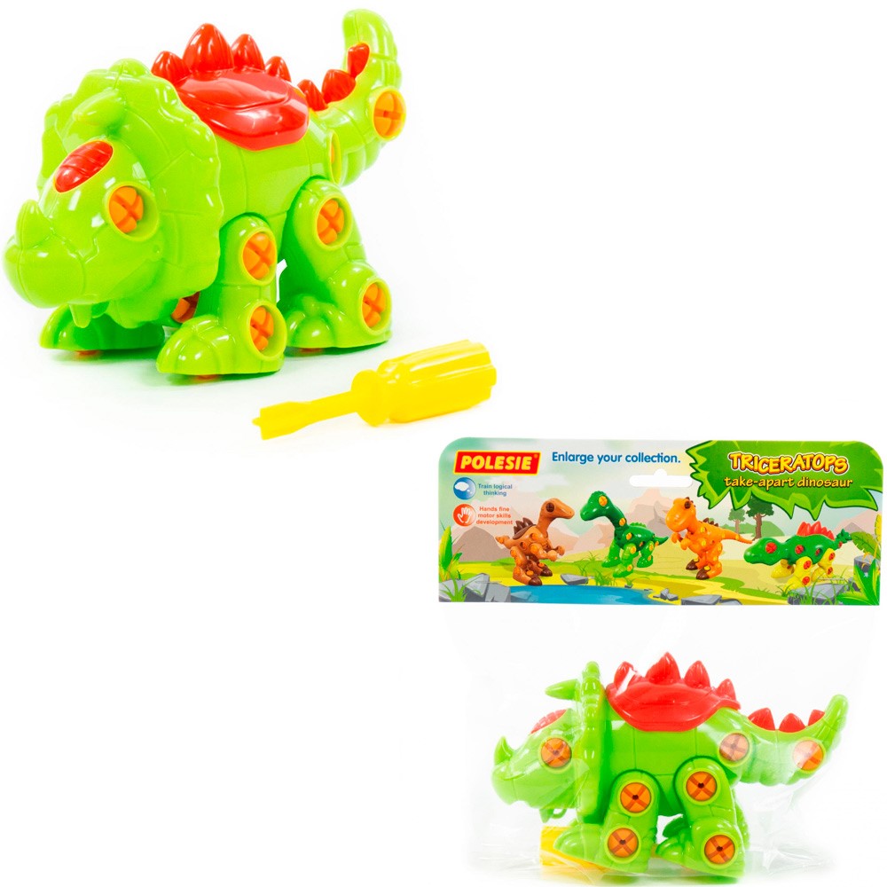 Конструктор-динозавр "Трицератопс" - это увлекательное занятие для мальчиков и девочек. Игрушка представляет собой яркого динозавра, состоящего из деталей и пластиковых шурупов, также в комплекте есть крестовая отвертка, при помощи которой трицератопса можно собрать и разобрать много раз. С готовой игрушкой ребенок сможет придумывать множество игровых сюжетов, развивающих фантазию, а процесс сборки-разборки фигурки позволит развить логическое мышление, сообразительность и навыки мелкой моторики. Изделие изготовлено из качественных безопасных материалов, не имеет острых краев и зазубрин. Цвета представлены в ассортименте.