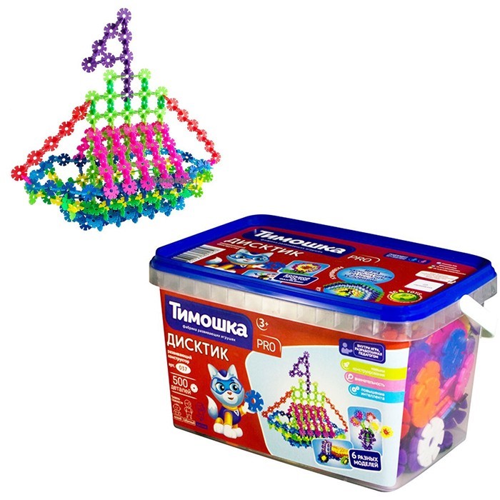 Конструктор "ДисКтик" на 500 элементов относится к серии "Профи" и позволяет создать сложные объемные 3D-конструкции. Элементы складываются в различные геометрические фигуры, постройки, диковинных животных и другие объекты, помогая тренировать аналитическое и пространственное мышление, логику и мелкую моторику.